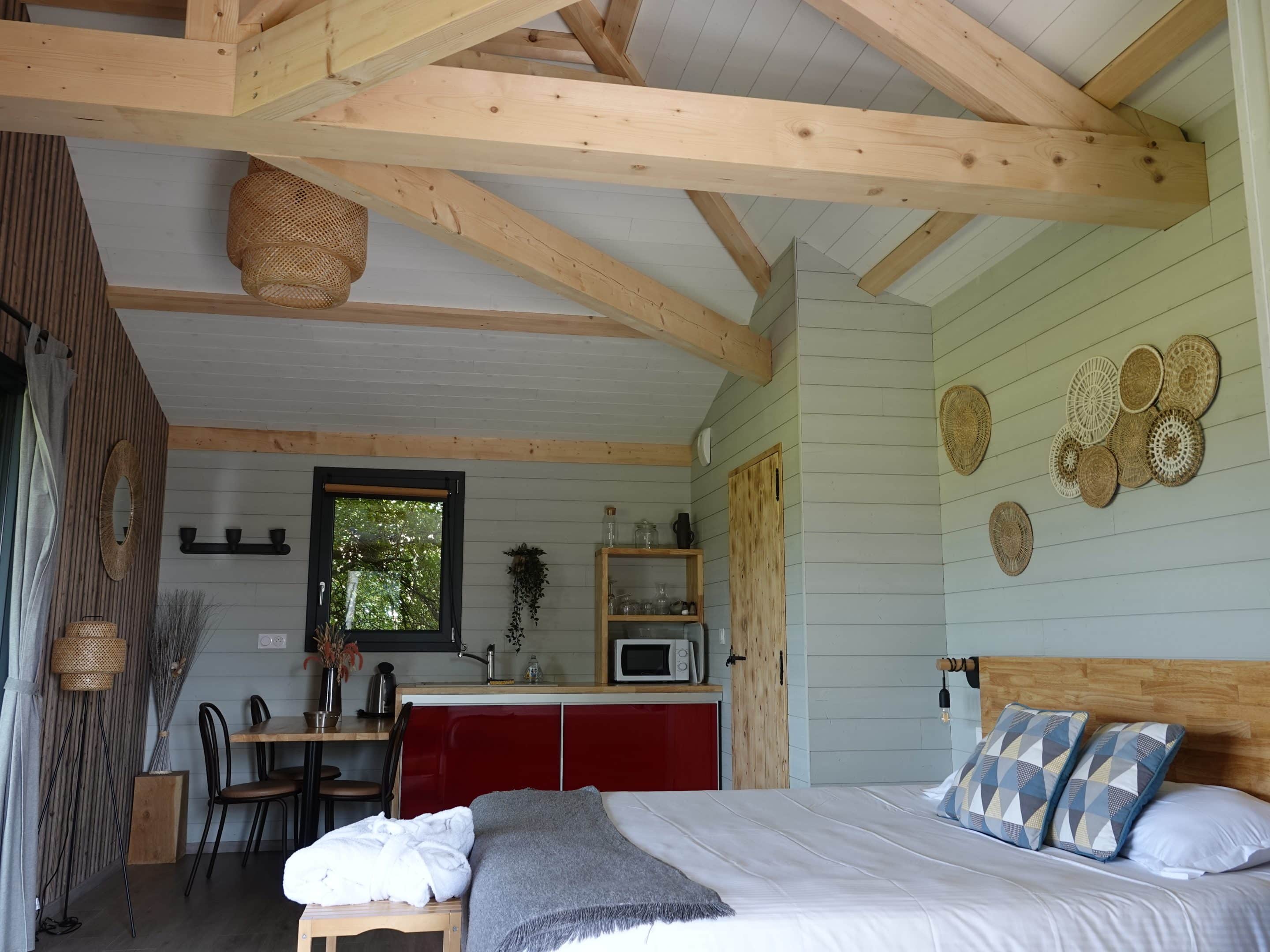 • Un lit parapluie et un réhausseur sont fournis dans chaque lodge. Les matelas ne sont pas inclus pour le lit parapluie.