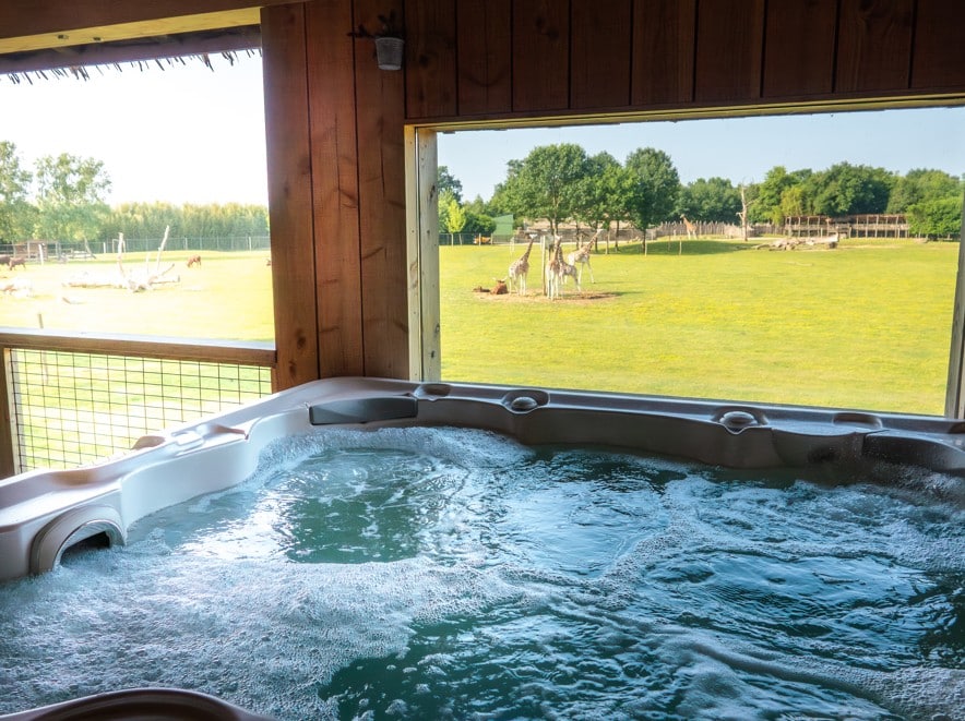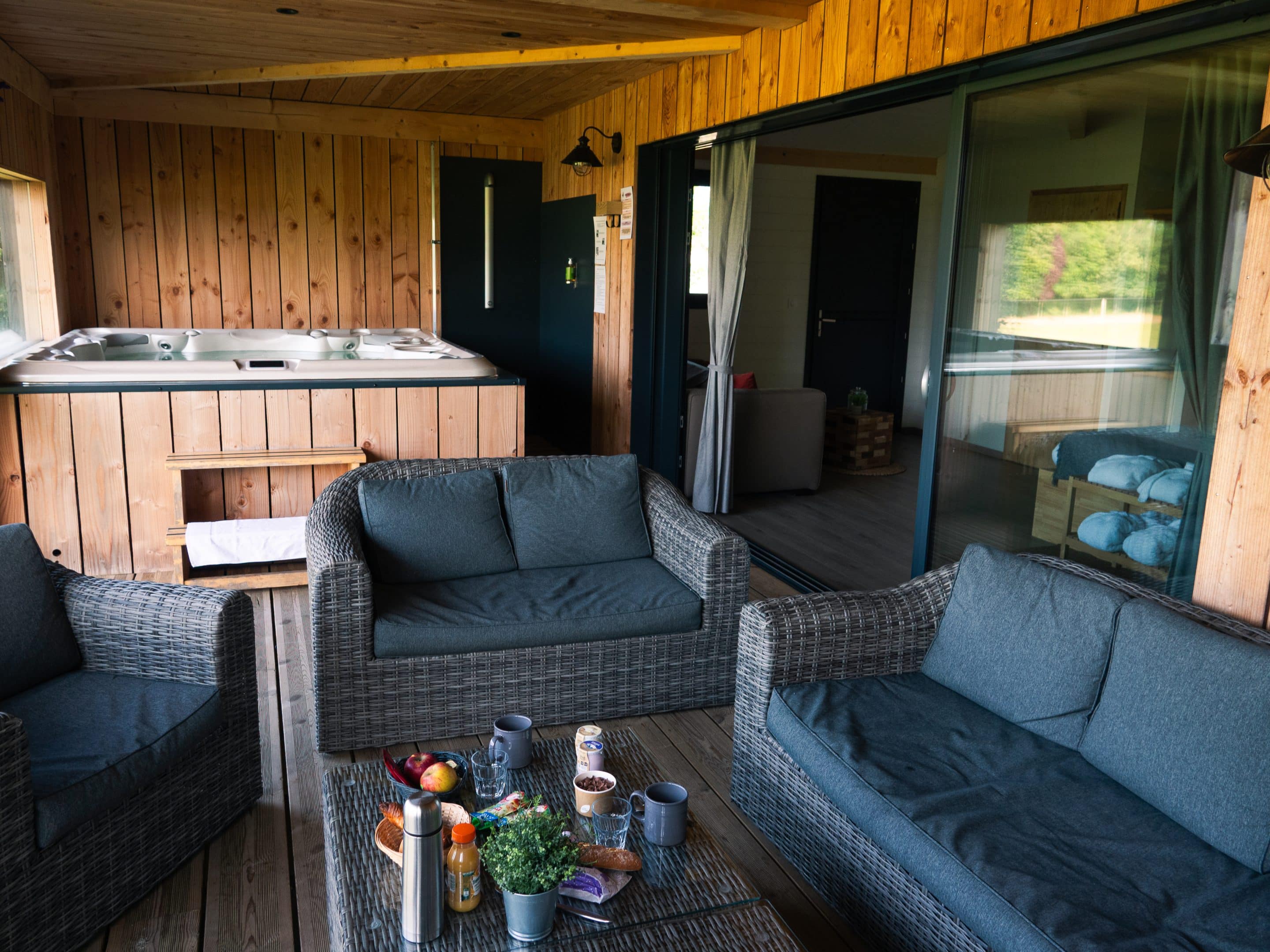 - Un jacuzzi et une terrasse avec mobilier de jardin.