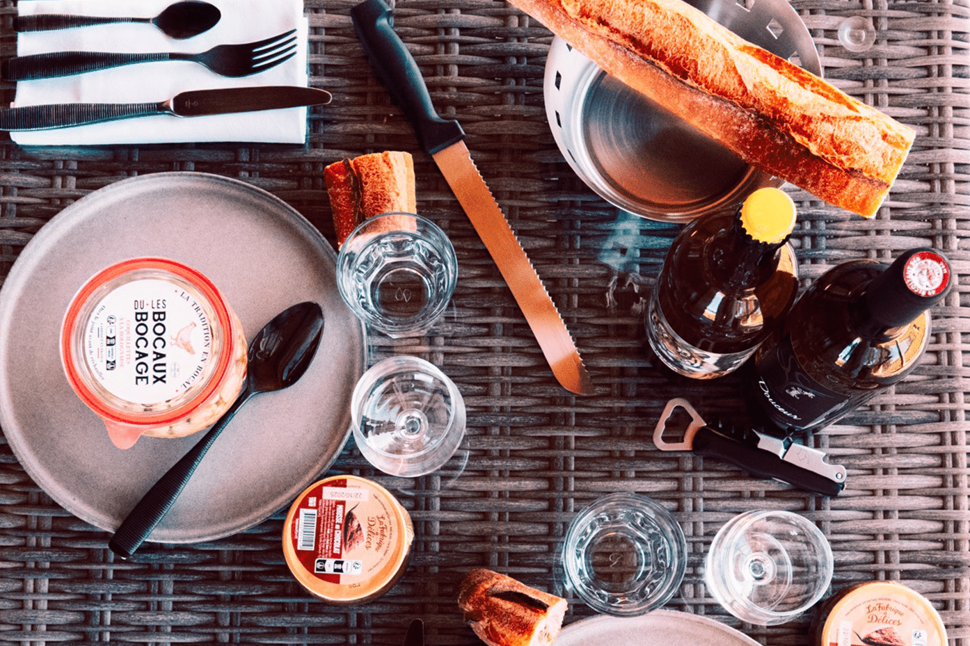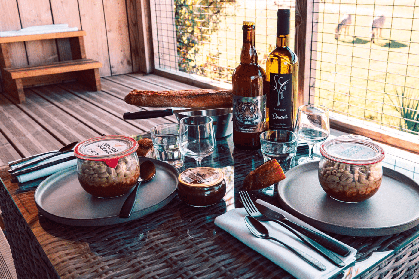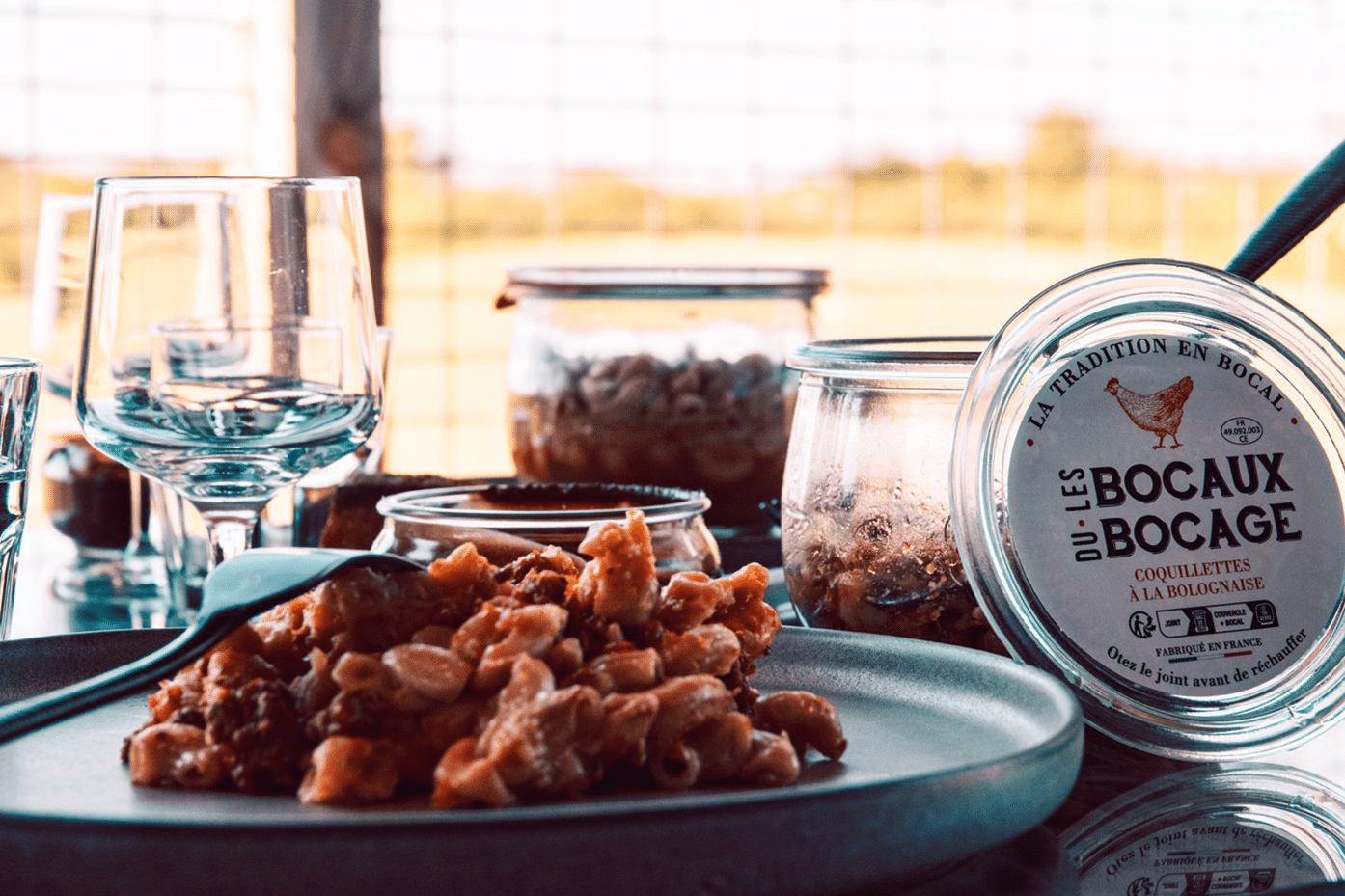 Votre plateau dîner comprend : votre sélection apéritive, plat préparé avec amour par notre partenaire les « Bocaux du Bocage », dessert et boissons.
